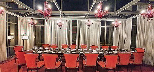 The sheer variety of vegetarian dishes at Yi Jing is incentive enough to turn meat away. The non-vegetarian fare gives no less competition, our favourite was Lamb with Shitake Mushroom in Oyster Sauce. A word to the wise: any preparation in prawn at this restaurant is simply outstanding. We washed all this down with Shanxi Sour—a sweet and sour gin concoction and Vodka and Tea which cleansed out palate for the dessert which was a sight to behold. We’d come back here again simply for the Hazelnut Praline and Yuzu Rocher with Candy Floss and Whisky Flambé.