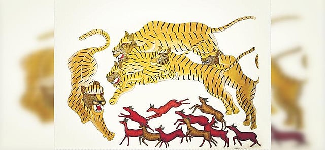 This ancient art form is commonly seen on the walls of rural Indian homes. Initially the medium was charcoal, and canvas was on the walls within and outside their homes. "I have been working on reviving this art form, particularly from the regions of Jhabua and Alirajpur, predominantly tribal belts of Madhya Pradesh. I belong to Jhabua. My ancestors, including my grandfather late HH Ajit Singh ji, worked a lot in the region to harness tribal talent," says Nandini Singh Jhabua, Princess of Jhabua, who is a heritage conservationist and patron of Gond Art in Madhya Pradesh.