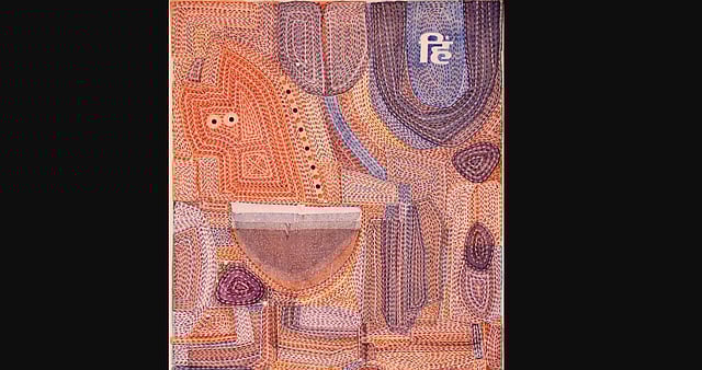 Manish Pushkale’s new exhibition of paintings in Delhi uses a general motif of the running stitch kantha embroidery