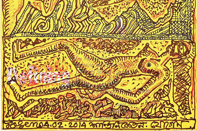Dark is part of my psyche,” he says. Gallery Art Exposure in Kolkata is presently showcasing Chowdhury’s works made during the pandemic. Titled ‘An Unfinished Poem’, the disturbing yet riveting images are a powerful comment on the recent history of our country. An octogenarian, Chowdhury’s imagination is still largely coloured by the memory of the small village in Bangladesh with its trees and temples. Coming from a family of zamindars, indulging in the annual Durga Puja festivities, community theatre performances... the young Chowdhury would keenly observe the kumbhars (artisans) and would later use their leftover natural colours to make his paintings.