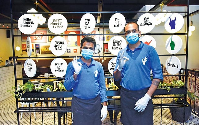 Eat silently and mindfully, Ayurveda advises us. Now you can also place your order silently at a restaurant. Using a bunch of cue cards you can communicate perfectly with the differently-abled staff at the new coffee shop Echoes Living Spaces in Kavuri Hills in Hyderabad and enjoy a novel dining experience via sign language.