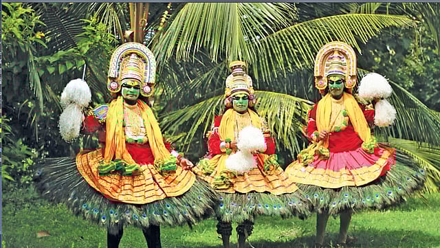 When Kuruchi Nadesan Palamoottil takes his 10-member troupe to their chariot, he could be mistaken by a neophyte dance critic for a Kathakali artist by half, considering his makeup and costume. Nadesan is a proponent of Arjuna Nritham, or mayilpeelithookam, as it is colloquially called because of the unique peacock feather skirt the dancers wear on stage. “The feathers in my costume and the absence of chutti (white makeup) differentiate Arjuna Nritham from Kathakali,” he explains.