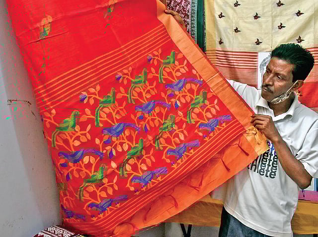 “I started Vani Vrtti in Bengaluru on National Handloom Day on August 8 in 2016. Most weavers would work with small looms to make a traditional sari. We taught them to create grand and festive wear, incorporating extra weft and ikat technique. The designs are based on the current fashion trends that I keep track of as a designer and creative artist. In a good month, a panika, who typically earns Rs 11,000 can make up to Rs 20,000 a month. Mridha’s enterprise disburses loans up to Rs 25,000 to buy looms.