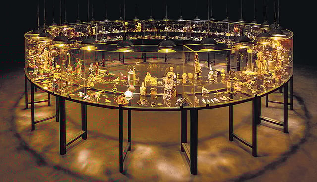 To declutter, the influential Japanese organising consultant Marie Kondo advises to only keep items that “spark joy”. While an object can be thrown out of the house, can the sentimentality be taken out of it? Hundreds of such discarded things—an old book, figurines, toys, jewellery and more—find place in Mithu Sen’s Museum of Unbelongings (MoU). Created between 2011 and 2018, the installation features gifted, found and “pre-loved” articles from her personal collection, and till date has six versions.