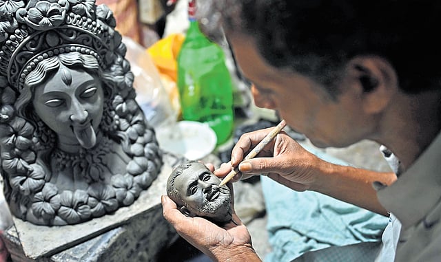 It is a warren of narrow interconnected alleys lined with the makeshift studios of artisans huddled against each other with paper-thin walls separating them. This is the birthplace of myriad Hindu deities—Kumartuli, the gritty artisans’ district in north Kolkata, West Bengal. The images of gods and goddesses are daily fashioned out of clay by artisans who have lived here for generations.