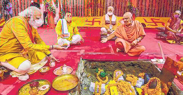 The work on the spire is on, and it is set to be ready before the historic event. “It is the resolve of the workers and managers both to install the spire before consecration to give a befitting reply to those who are claiming that consecration in an incomplete shrine would be inauspicious,” says a construction manager.