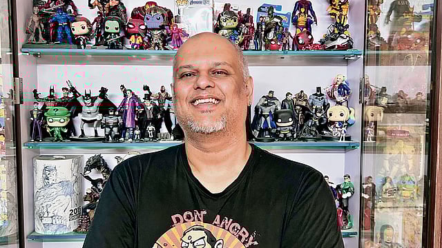 Of course, sourcing them hasn’t always been a walk down the toy aisle. “Back in the ’80s, the neighbourhood toyshop was our haven,” he recalls. Now, it’s e-commerce sites, rare pop-up stores, and trips to Comic Cons, both in India and abroad. Abhijeet has even tracked down statues like cartoonist Sergio Aragonés’ limited-edition Batman—his most treasured piece. “My wife gifted it to me. I happened to e-meet Sergio once during an online session and showed it to him—he was thrilled,” he beams.