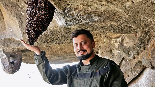 The burning hive led him to Google, and Google led him to a little-known fact: Pune houses the Central Bee Research and Training Institute (CBRTI). The irony wasn’t lost on him. “Even in a city with India’s central bee institute, people still kill bees,” he says. “If they weren’t safe here, what hope was there for the rest of the country?” In December 2012, he signed up for a five-day awareness course at CBRTI. The programme focused on domesticated Apis cerana indica, bees bred for honey. But Godse found himself drawn to wild honeybees—the ones people feared, misunderstood, and destroyed. By 2014, he had enrolled in a more intensive month-long course. “The bees people consider pests are vital to our ecosystems. And no one was protecting them,” he rues.