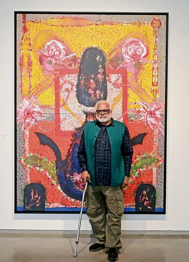 At 86, Manu Parekh is raring to go. His vibrant abstracts titled Flower Sutra, on show in a New Delhi gallery echoes the feelings of a small child let loose in a kaleidoscopic world of light and joy. Blue, red, green and purple colour the canvas with bold hues, segueing into one another, yet retaining the distinctive individual allure which is a hallmark of the Delhi-based artist’s style. Parekh is showing in Delhi after five years. The 25 pieces at the exhibition were created in his South Delhi studio when the pandemic was raging. While the world was being swallowed by death and darkness, the artist had attempted to discover what binds the universe amidst chaos—faith. He succeeded.