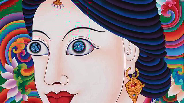Chodak, who spends his time between Kathmandu, Nepal, and New York City, US, is a devoted Buddhist practitioner and direct descendant in the lineage of Repa Dorje Chang. Pretty cool as labels go; Repas are solitary tantrics, but within a particular lineage or tradition. “Dorje Chang” is Tibetan for Vajradhara, the primordial Buddha. Chodak is also a master of the Buddhist thangka painting, which depicts deities and scenes from the life of the Buddha, influential lamas and bodhisattvas. Chodak’s refinement of this rarefied art form earned him the prestigious position of the artist-in-residence at the Dalai Lama’s home to complete a prominent Buddhist project from 2003 to 2021. Chodak was also chosen to complete the mural thangka paintings in the sanctum sanctorum of the five-story Great Stupa in Tawang in Arunachal Pradesh.