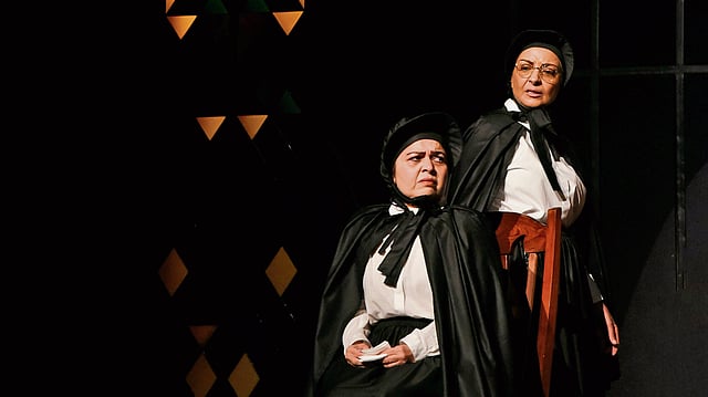 The well-designed set aids in focusing attention on the actors and their lengthy conversations. Seth delivers a striking performance, never once wavering from her high ideals and belief in the existence of good and evil, with no space for grey areas. She is ably aided by Nayar’s naivete as a young nun whose love of teaching is branded as too frivolous an act for those in the service of God.