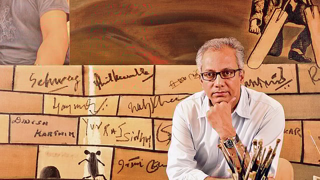 Growing up in Mumbai, artist Atul Dodiya was fascinated by cinema posters, calendar art, and the lively street visuals around him. Over time, he realised that painting was the best way for him to explore ideas about history, identity, and the world around him. Art became his natural way of understanding and expressing his thoughts. His worldview is shaped by this. It is neither stridently agitational nor comfortably neutral; it is reflective, layered, and insistently democratic. Drawing from figures like Gandhi, cinema, poetry, and art history, he revisits the idea of India as a plural, argumentative space, often meditating on violence, memory, censorship, and the fragility of institutions. His politics lie in nuance: a defence of secular, liberal values; a scepticism of absolutism; and a belief that art must remain a site of ethical inquiry in turbulent times.