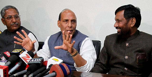 A beaming BJP President Rajnath Singh made this announcement at a news conference at his residence after another round of hectic parleys by the leaders of the two parties on seat-sharing in Bihar ahead of the Lok Sabha elections.