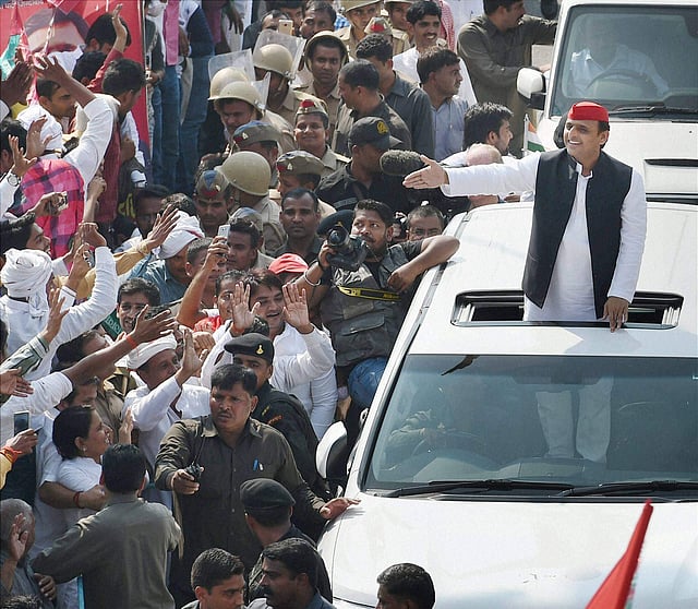 The presence of Mulayam, Shivpal and Akhilesh on one platform came days after bitter acrimony in the Yadav clan that saw no holds barred tit-for-tat sackings and expulsions of followers of warring camps. Incidentally, the hi-tech customised rath broke down after barely one km journey forcing Akhilesh to shift to his official vehicle to resume his yatra.