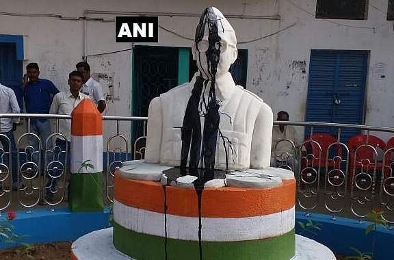 The bust was to be unveiled on Tuesday morning as part of Independence Day celebration but was found smeared with coal-tar and its face partly damaged. A complaint was lodged with Khayrasole police station against unknown persons.