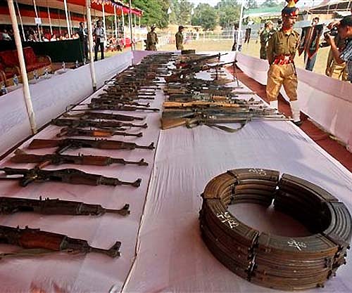 Officials said a joint operation was launched by the CRPF and state police in the district after which a light machine gun (LMG), a semi-automatic US made rifle, an AK 47, a self loading rifle (SLR), three INSAS rifles, six other guns and some communication gadgets were seized from a hideout.