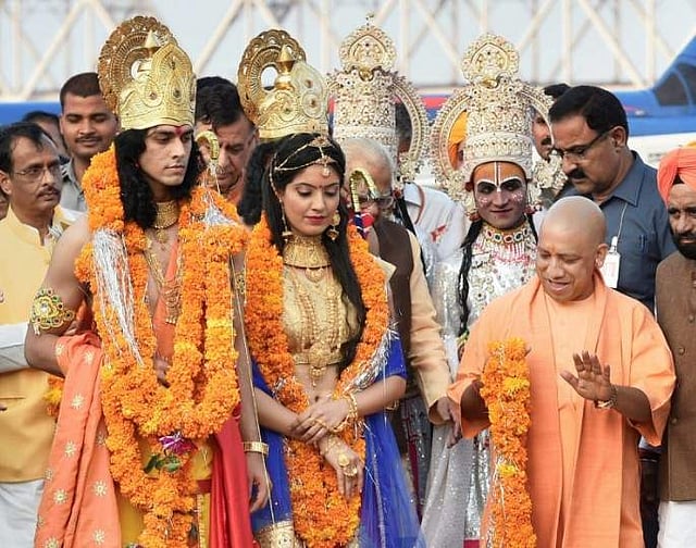 Adityanath, accompanied by Governor Ram Naik and his senior ministers, descended on Ayodhya to preside over a grand show in the temple town.