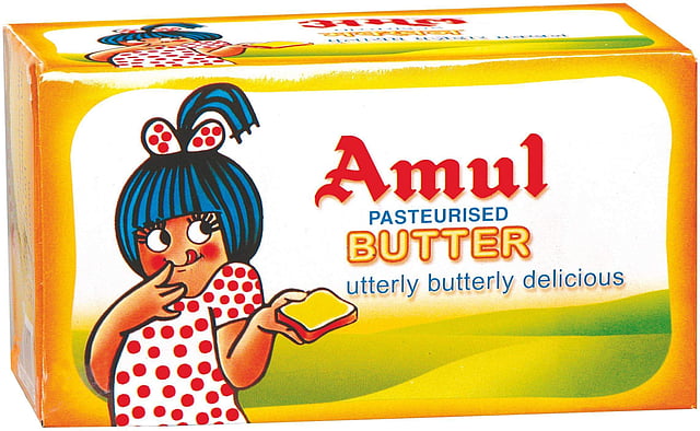 The posters, of course, don't feature the blue-haired "Amul Girl" -- but a boy resembling her.