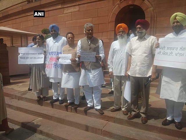 NEW DELHI: Sporting a kurta imprinted with a demand for roll back of GST on the 'langar', a free communal kitchen, at the famed Golden Temple, Congress MP from Amrtisar Gurjeet Singh Aujla stood out in the Lok Sabha today.