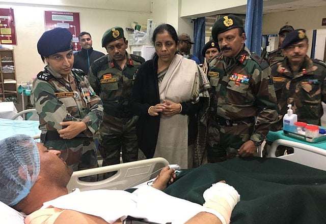 Defence Minister Nirmala Sitharaman visited those injured in the terror strike on the Army's Sunjuwan camp at a Military hospital in Jammu on Monday.