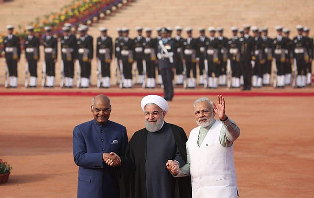 NEW DELHI: Iran President Hassan Rouhani inspected a guard of honour at the Rashtrapati Bhawan here on Saturday.