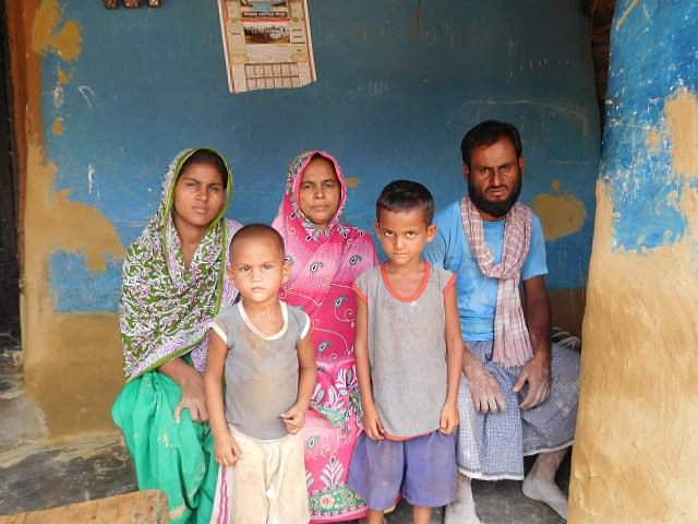 Victim Sheikh Shajahan's daughter Shabana Khatun, wife Hanufa Bibi and eldest son Sheikh Imran along with two of his sons, at their residence in Bhursa village in Arsha block of Purulia district in West Bengal on Tuesday. I Aishik Chanda