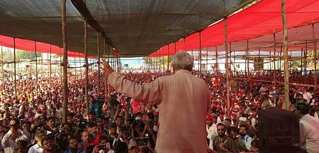 Communist Party of India-Marxist General Secretary Sitaram Yechury addresses the farmers' rally in Mumbai. (Twitter | AIKS)