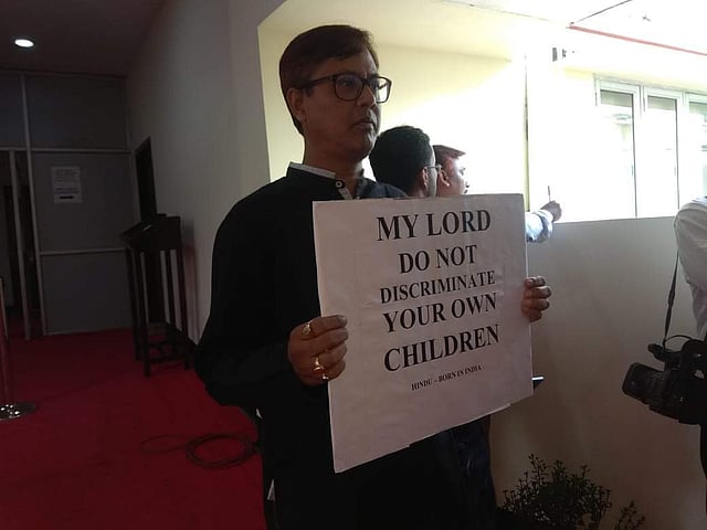 “My lord do not discriminate….your own children. Hindu – born in India,” read the placard which he came holding at the Assam Assembly during the autumn session on Monday. His obvious reference was to the two-member SC Bench led by Chief Justice in-waiting Ranjan Gogoi, who happens to be from Assam.