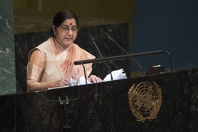 "The biggest challenge of our era comes from the existential threats of climate change and terrorism. We imagined that the arrival of the 21st Century would bring with it an age of common good, defined by cooperation in the quest for peace and prosperity. But here in New York, the horrific tragedy of 9/11, and in Mumbai the catastrophe of 26/11 became the nightmares that shattered our dreams," Swaraj said.
