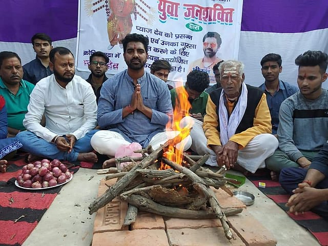 A day after two persons were seen selling onions wearing helmets for fear of being mob-attacked, volunteers and common people at Hajipur about 19 kms from Patna, performed a 'havan' (a religious ritual of offering holy herbs in fire) to bring the skyrocketing price of onions down, on Sunday.