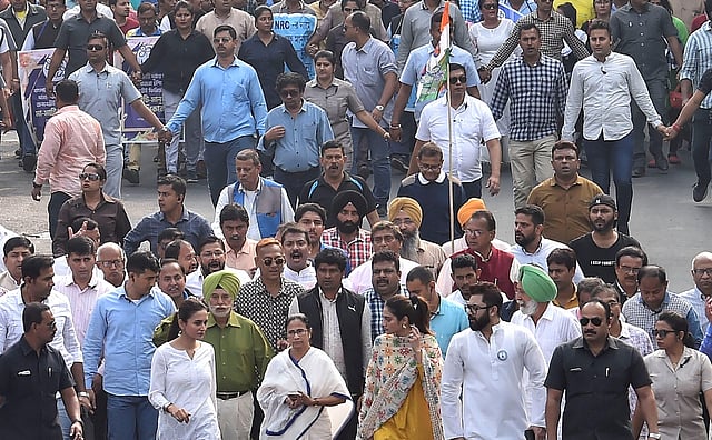 TMC supremo Banerjee, along with her party colleagues, began a protest march from Howrah Maidan which will culminate at Dorina Crossing at Esplanade in the heart of Kolkata.