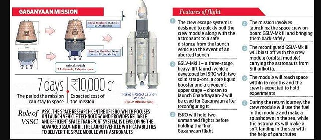 It would be the same GSLV-MkIII version that would carry the vyomanauts to space. However, the vehicle will have to be reconfigured to take astronauts to space by ensuring triple modular redundancy or more as it cannot afford a technical snag like the one that happened in Chandrayaan-2. As per the design, the vehicle will have the three stages -- solid, liquid and cryogenic -- and above it would be the crew module carrying the astronauts for Gaganyaan.
