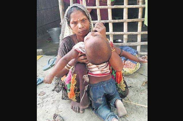 Reena Devi from Harbanshpur village lost two children to the syndrome. She now clings to her surviving five-year-old like her life depended on it.