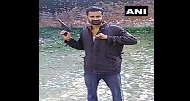 An inmate at the Unnao jail seen in a viral video brandishing a pistol. (Photo | ANI, Twitter)