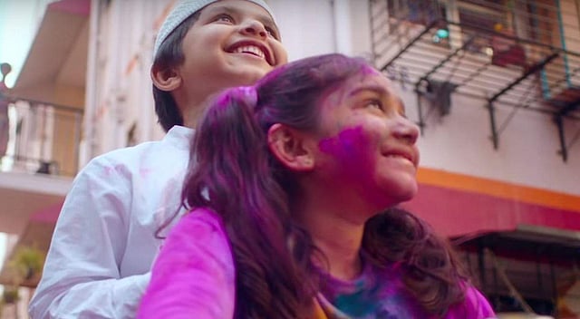 The one-minute-long ad features a young Hindu girl, dressed in a white t-shirt, who chooses to get stained in Holi colours in order to protect her young Muslim friend who has to go to the nearby mosque to pray.