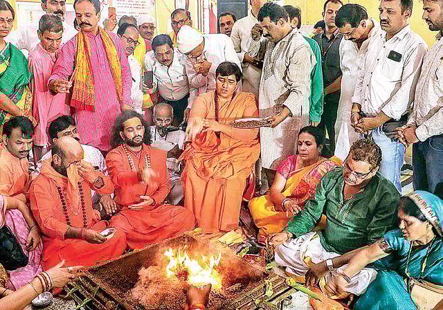 With Thakur in the fray and the BJP thrusting “the conspiracy of Hindu terrorism hatched by the Congress” on the centre stage of electioneering, top guns of the party are once again counting on sharp polarisation. Besides, women are seen rallying behind Thakur, apparently in sympathy for the alleged atrocities she faced during her incarceration in connection with the Malegaon terror blast case.