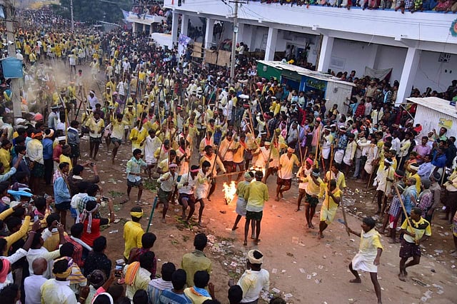 In accordance with the belief, the residents of Neradiki, Neranikitanda, Kothapeta representing the followers of the Lord, take the idols of Mala Malleswara Swami from Devaragattu to their respective villages on the night of Dasara when those who stay in Ellarti, Arikera, Maddigeri, Nitranatta, Sulavai and Hebbetam villages and are followers of the demons, obstruct them.