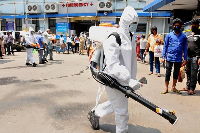 KOLKATA: The Kolkata Municipal Corporation (KMC) workers on Sunday disinfected various areas in the city as a precautionary measure against the spread of the coronavirus.