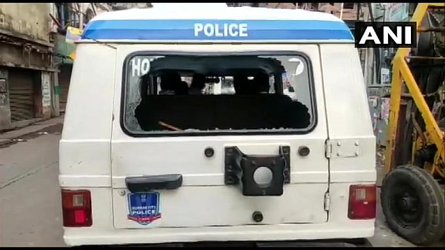 Two police personnel were injured as a mob hurled bricks and bottles and attacked a police outpost in the Tikiapara area, besides vandalising two security force vehicles after the lawkeepers tried to enforce the lockdown in Belilous Road on Tuesday.