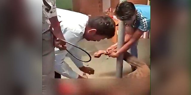 The video shows an oiled screwdriver being inserted in the Dalit man who was caught stealing in Rajasthan. (Photo| Twitter screengrab)