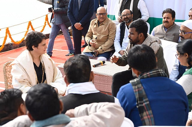 Earlier, the Congress leader’s first stop in the temple town was Sant Ravidas’ temple at Rajghat, where she offered prayers and met the trustees. She then took a boat to Panchganga Ghat where she met people who agitated against the amended citizenship act.