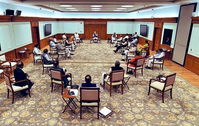 In the picture, the Prime Minister as well as all Cabinet Ministers are sitting at some distance as per the norms decided by health experts to avoid the spread of novel coronavirus which so far claimed 10 lives. Over 562 confirmed cases have so far been reported across India.