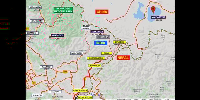 The new road alignment is along the Kali River which is the boundary between India and Nepal. The end point of the road is at Lipulekh Pass with China which is near the tri-junction of India, China and Nepal.