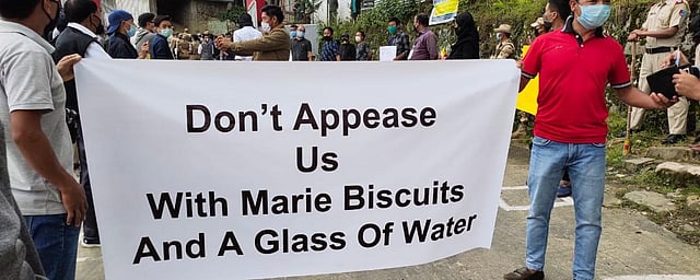 On Friday, when the state’s Health Minister Pangnyu Phom rushed to Tuensang to take stock of the COVID-19 situation, the locals had staged a protest on the same issue. They held banners that read: “Don’t appease us with Marie biscuits and a glass of water”.