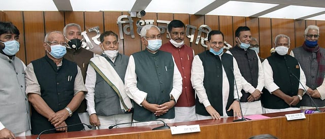 Deputy chief ministers and BJP members Tarkishore Prasad and Renu Devi were the first ones to be sworn in.