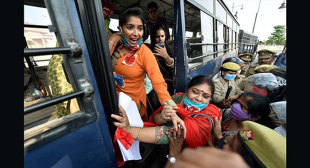 Meanwhile, Congress leader and former Union Minister of state Shyoraj Jivan, who was booked on Wednesday for allegedly fomenting caste conflict by using provocative language threatening a particular community, was taken to Sadabad police station in Hathras for questioning.