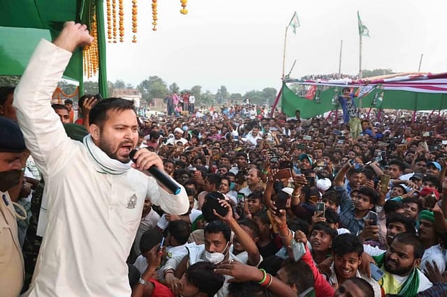 PATNA: For the first time in the history of Indian politics, Rashtriya Janata Dal (RJD) leader Tejashwi Yadav set a record on Saturday by conducting 19 rallies in a one day, in poll-bound Bihar.