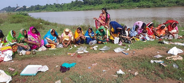 Hundreds of women were seen gathering along the banks of Damodar river in Ramgarh to perform rituals after wearing their new saris, apparently, after a message about this surfaced online.