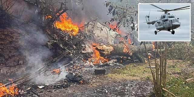 The chopper was on its way from the Sulur IAF base to the Defence Services College (DSC) at Wellington when it crashed.