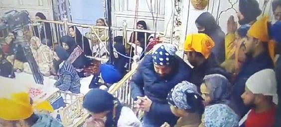 A man with yellow cloth around his head jumped inside the sanctum sanctorum of the Golden Temple. (Video Screengrab)